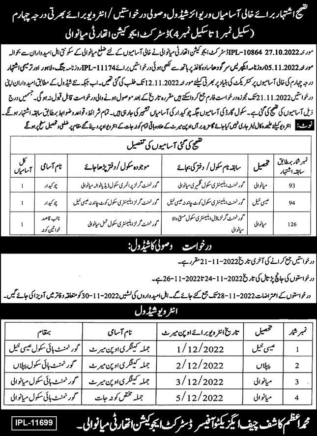 District Education Authority DEA is looking for candidates for following posts as per job advertisement published in daily Express Newspaper of November 15, 2022 for location Mianwali, mianwali Punjab Pakistan: