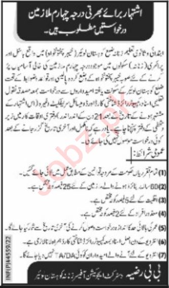 Candidates with Matric, Primary and Middle etc. educational background will be preferred.