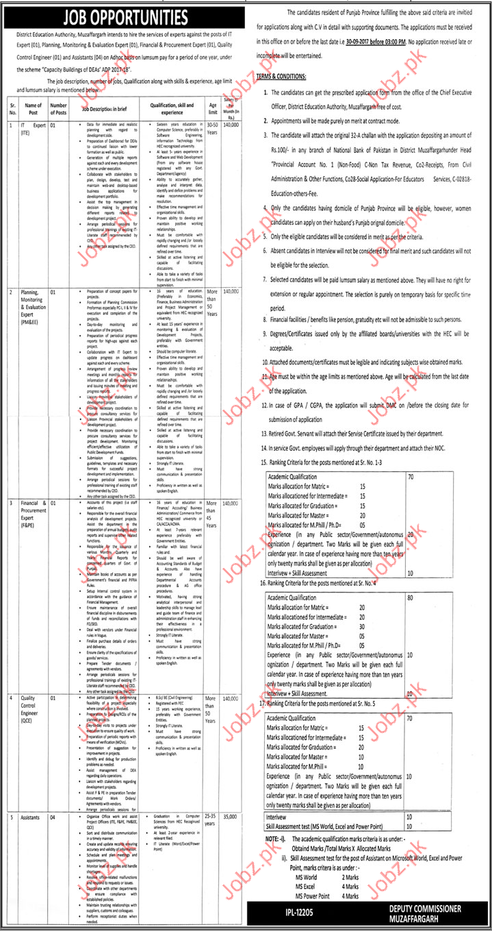 Apply as per details in job advertisement. Login to view further details of how to apply via https://www.jobz.pk online.