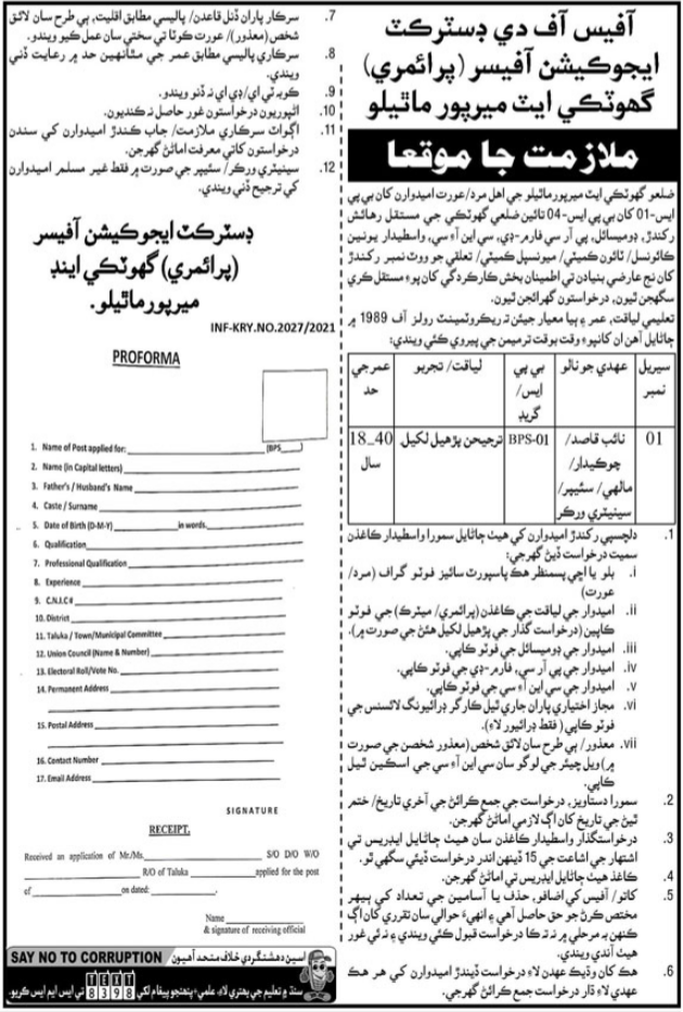 Latest District Education Office Education Posts Mirpur Mathelo 2025