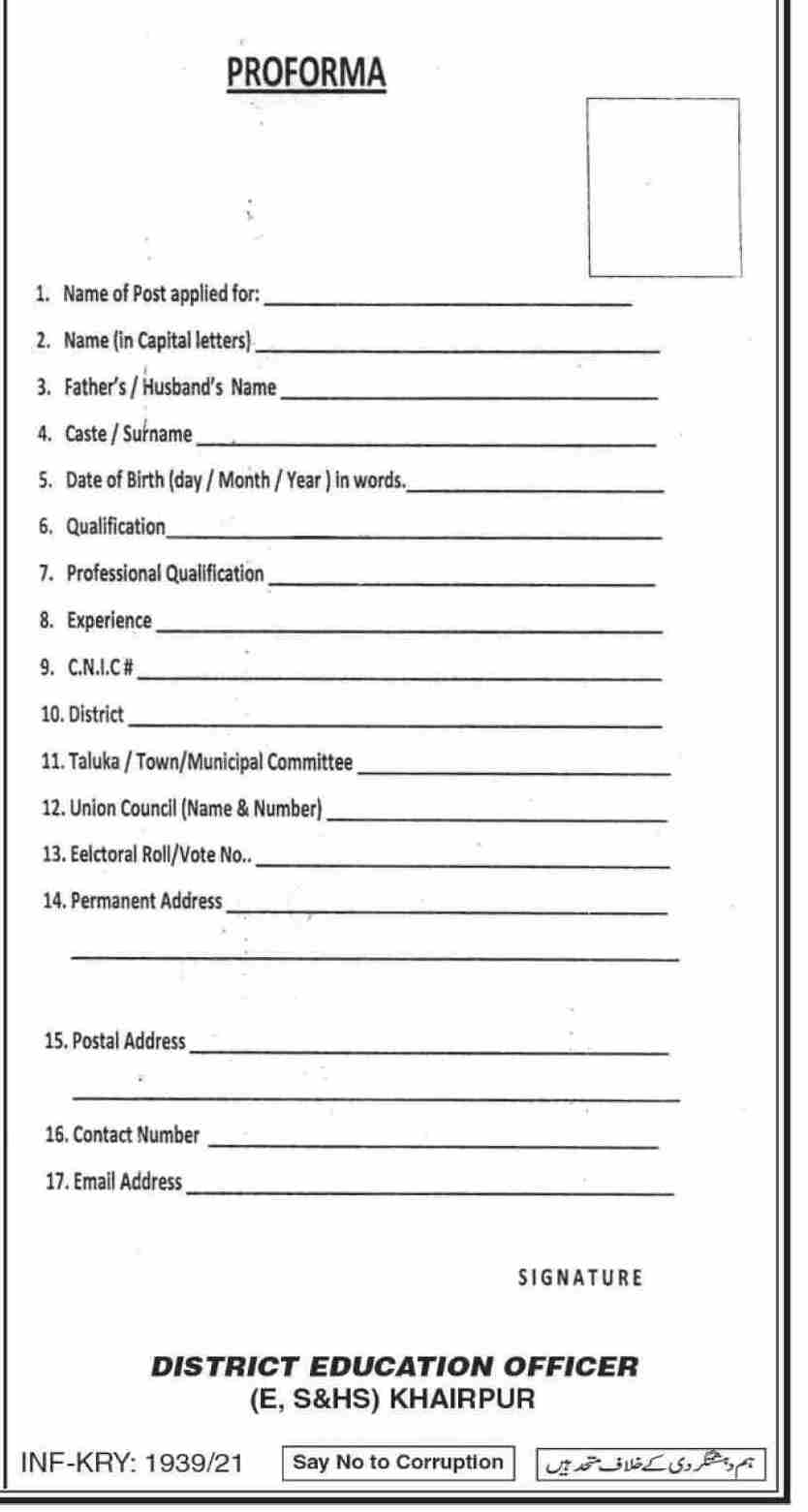 Latest School Education & Literacy Department Human Resource Posts Sukkur 2025
