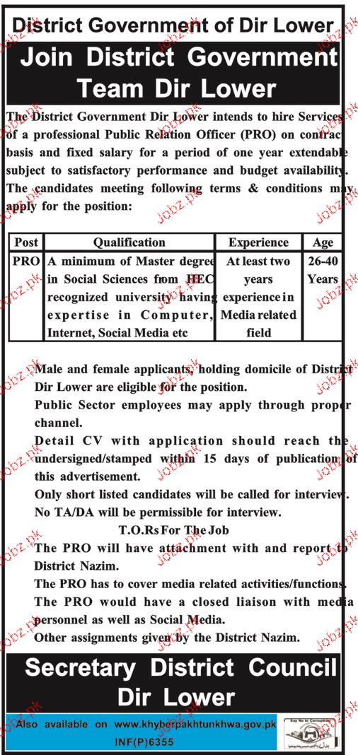 Apply as per details in job advertisement. Login to view further details of how to apply via https://www.jobz.pk online.