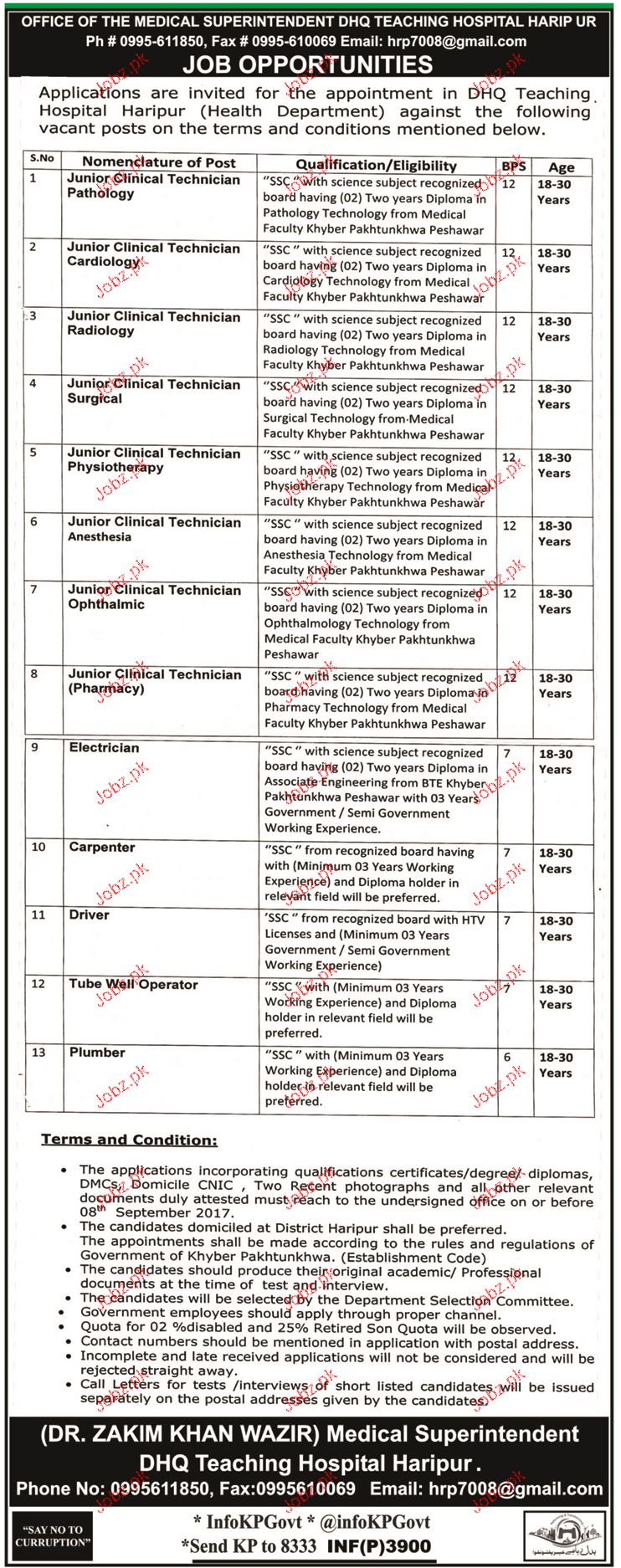 Apply as per details in job advertisement. Login to view further details of how to apply via https://www.jobz.pk online.