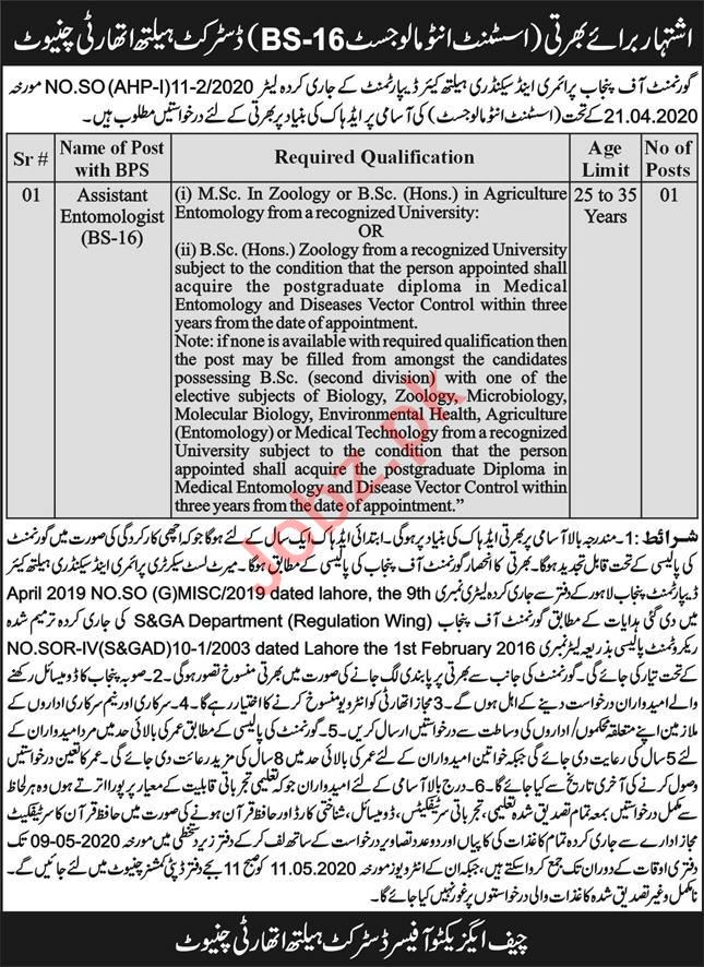District Health Authority DHA Chiniot Jobs 2020 Entomologist