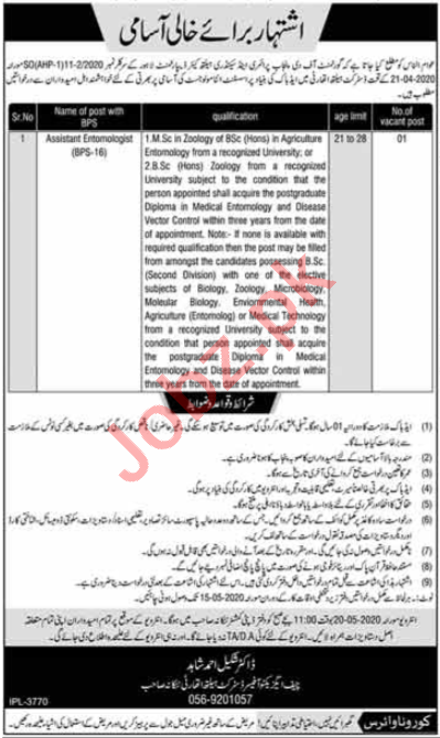 Vacancies in Primary & Secondary Healthcare Department Advertisement May 2020