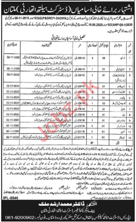 District Health Authority Multan Jobs 2020 Sanitary Petrol