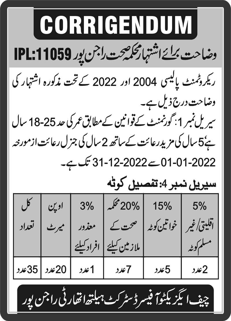 Latest District Health Authority Medical Posts Rajanpur 2025