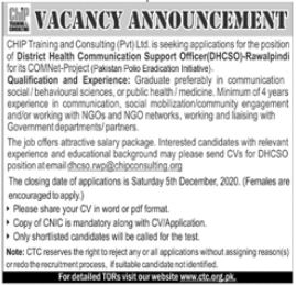 Vacancies in CHIP Training & Consulting Pvt Ltd Advertisement November 2020