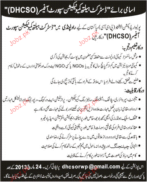 Apply as per details in job advertisement. Login to view further details of how to apply via https://www.jobz.pk online.