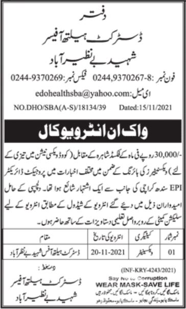 District Health Office Shaheed Benazirabad Jobs 2021
