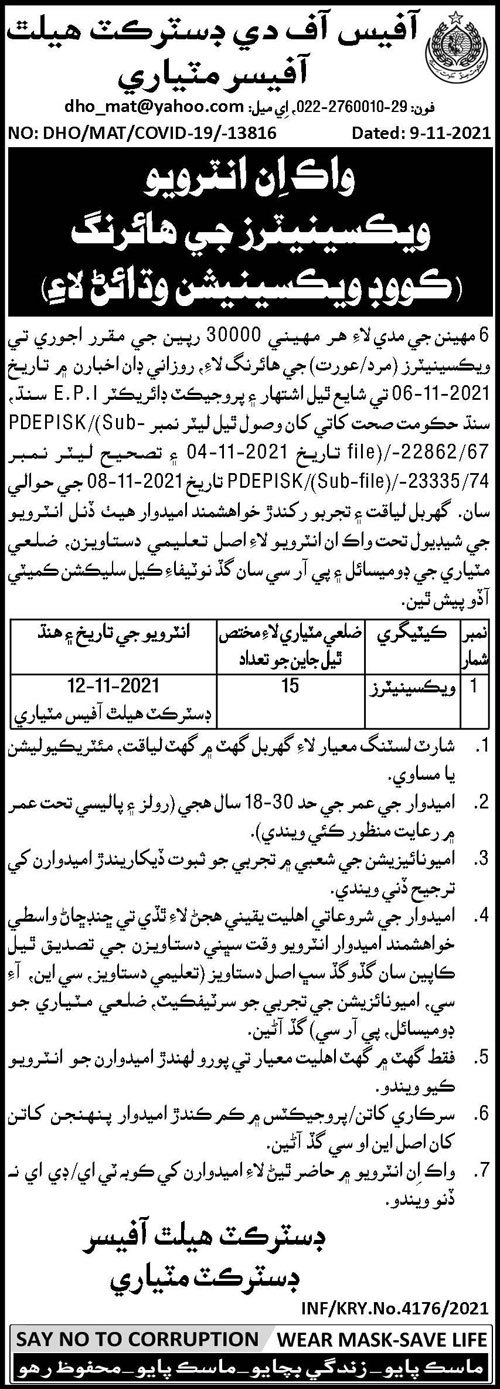 District Health Officer DHO Matiari Jobs 2021 For Vaccinator