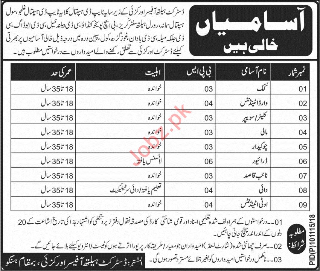 District Health Officer Hospital Jobs 2018 In Hangu KPK