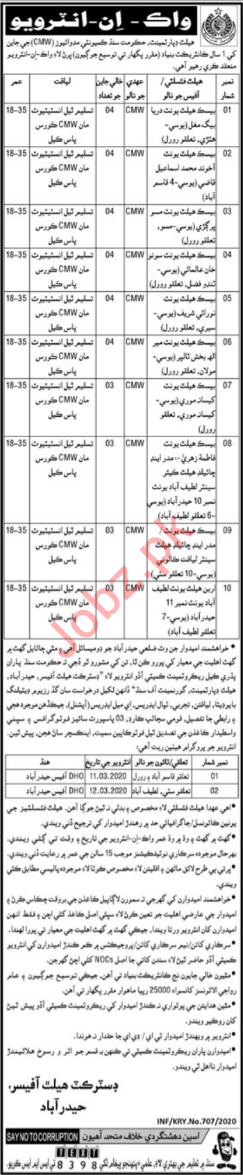 District Health Officer Hyderabad Jobs 2020 For CMWs