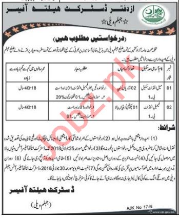 District Health Officer Jhelum Valley Attendants Jobs 2018