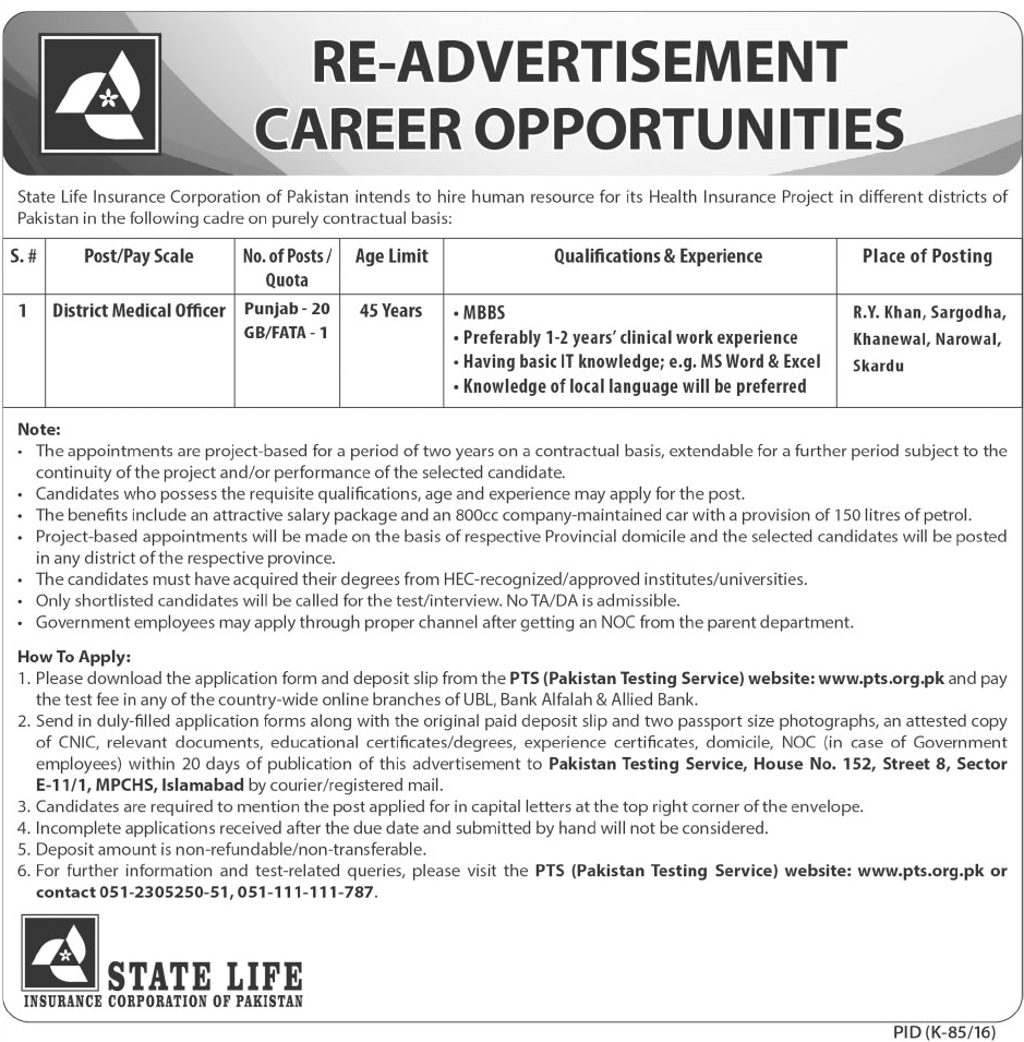 Apply as per details in job advertisement. Login to view further details of how to apply via https://www.jobz.pk online.