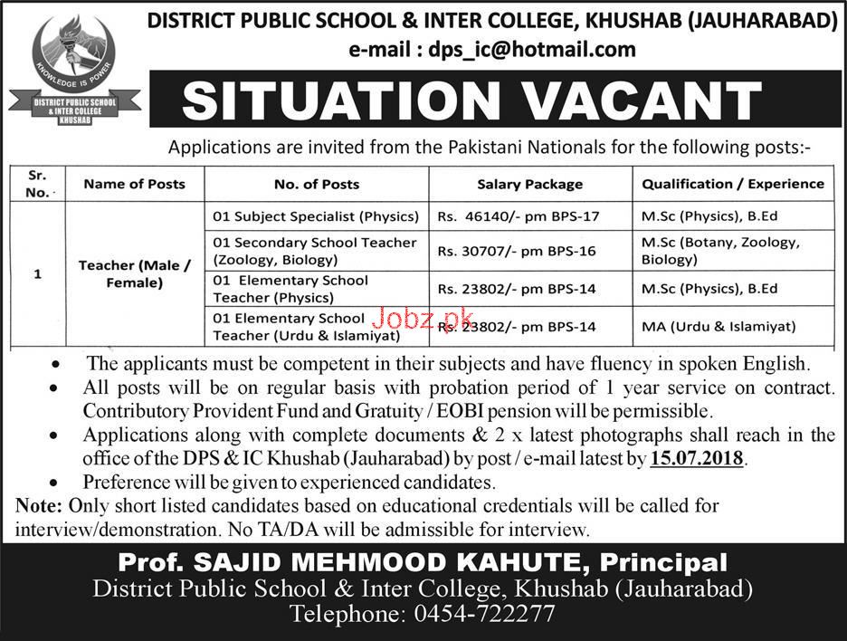Apply as per details in job advertisement. Login to view further details of how to apply via https://www.jobz.pk online.