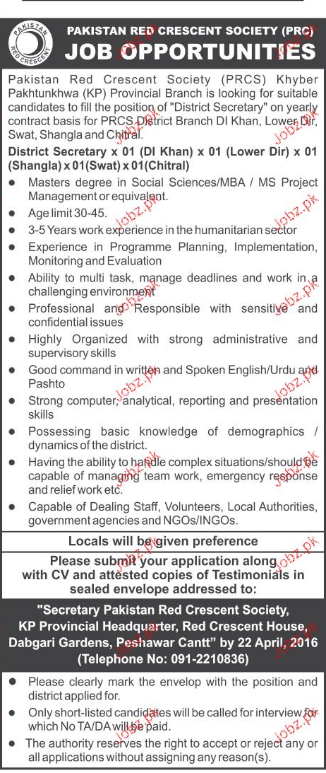 Apply as per details in job advertisement. Login to view further details of how to apply via https://www.jobz.pk online.