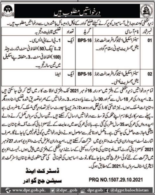 District & Session Court Gwadar Jobs 2021 For Stenographer