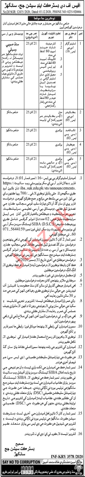 District & Session Court Sanghar Jobs 2021 for Mali & Qasid