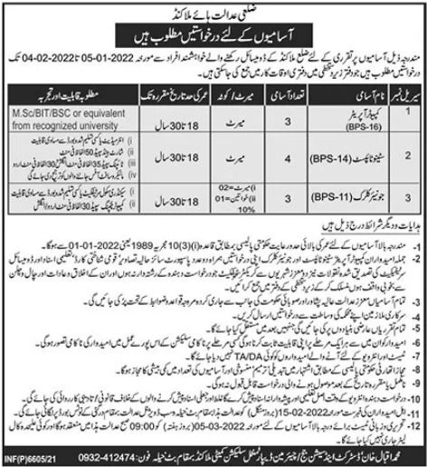Latest District & Session Judge Admin Clerical Posts Malakand 2025