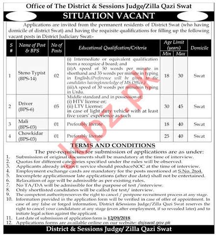 District & Session Judge Swat Steno Typist & Driver Jobs