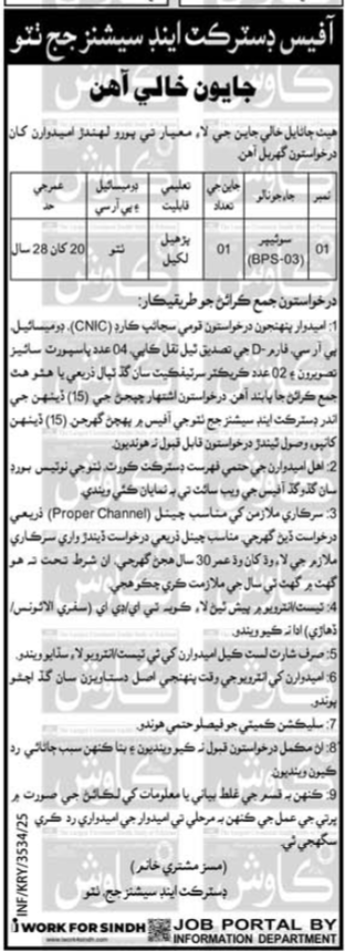 District & Session Judge is looking for candidates for following posts as per job advertisement published in daily Kawish Newspaper of October 27, 2025 for location Tando Adam, tando adam Sindh Pakistan: