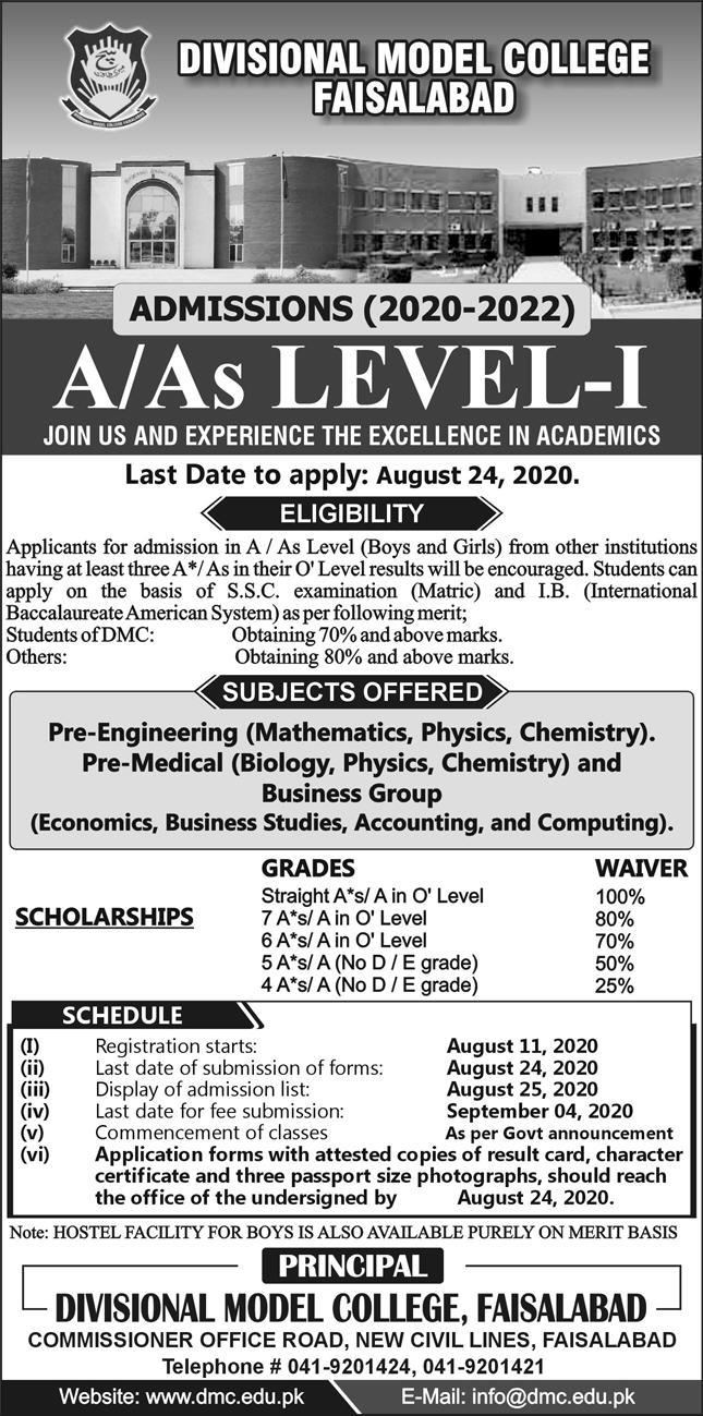 Principal, Divisional Model College Faisalabad Race Course Road Civil Line Faisalabad