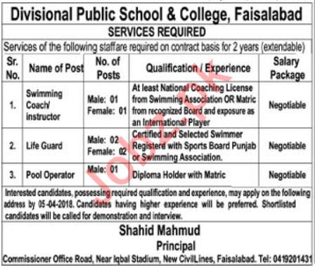 Divisional Public School & College DPS Faisalabad Jobs 2018