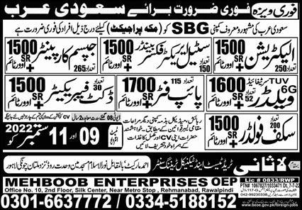 Lasani Trade Test & Technical Training Center is looking for candidates for following posts as per job advertisement published in daily Express Newspaper of September 8, 2022 for location Makkah, madina Saudi Arabia: