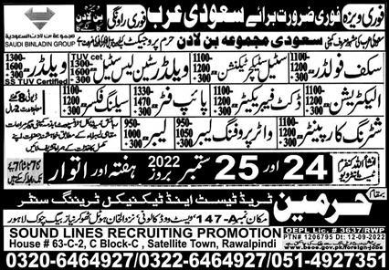 Harmain Trade Test & Technical Training Center invites applications for job positions advertised in daily Express dated 24 September 2022 for following vacancies in Makkah, riyadh Saudi Arabia.