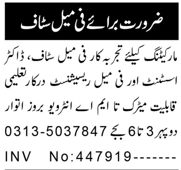Doctor Assistant & Marketing Officer Jobs 2026 In Peshawar
