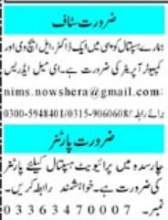 Hospital Clinic Peshawar, nowshera and peshawar Khyber Pakhtunkhwa KPK Pakistan invites applications from eligible candidates for the post of lady health visitor, computer operator, doctor and lhv as per advertisement of March 10, 2022 published in daily Mashriq Newspaper. Educational qualifications required Matric, Intermediate, Bachelor and MBBS etc.