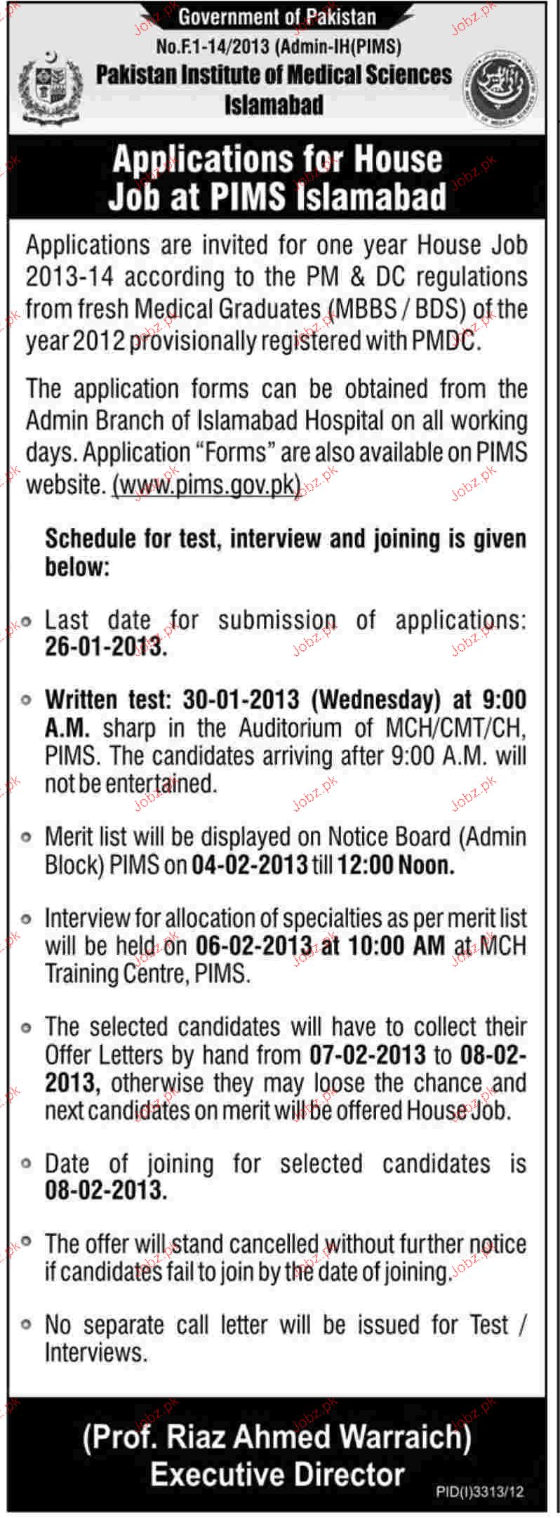 Apply as per details in job advertisement. Login to view further details of how to apply via https://www.jobz.pk online.