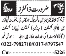 Doctor Jobs At Qadeem Agha Healthcare Center