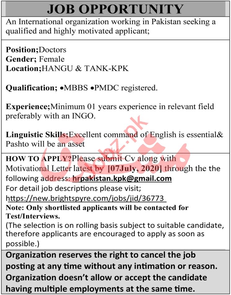 Doctor & Lady Doctor NGO Jobs 2020 In KPK