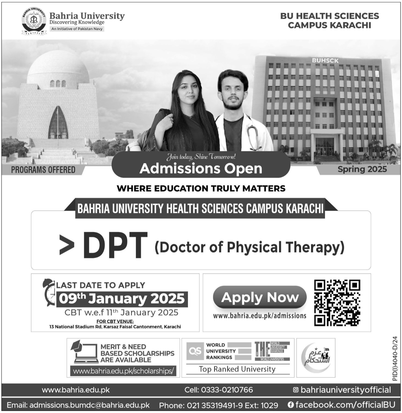 Doctor of Physical Therapy admissions at Bahria University