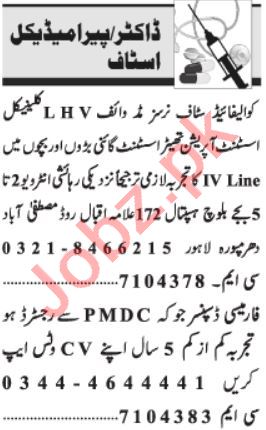 Doctor & Paramedical Staff Jobs 2021 In Lahore