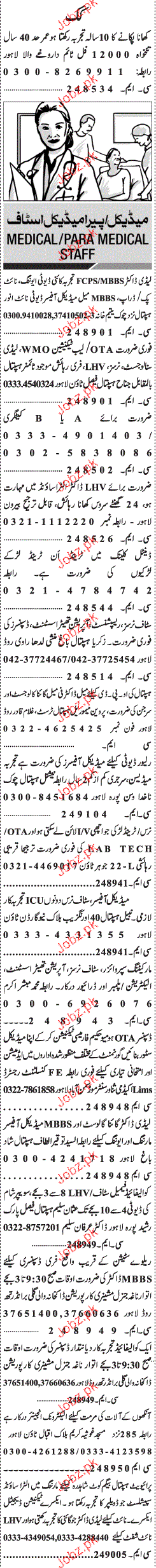 Doctors and Para Medical Staff are required in Lahore.
