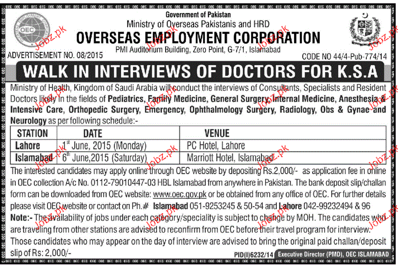 Latest Overseas Employment Corporation OEC Medical Posts Islamabad 2025