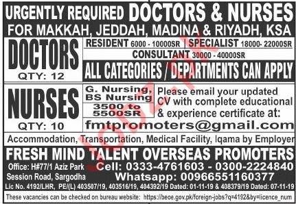 Latest Fresh Mind Talent Overseas Promoters Medical Posts Saudi Arabia 2025