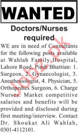 Latest Wahlah Family Hospital Medical Posts Lahore 2025