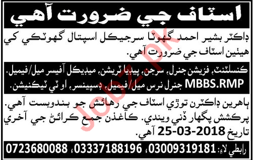 Doctors, Nurses, Surgeons & Physicians Jobs In Ghotki
