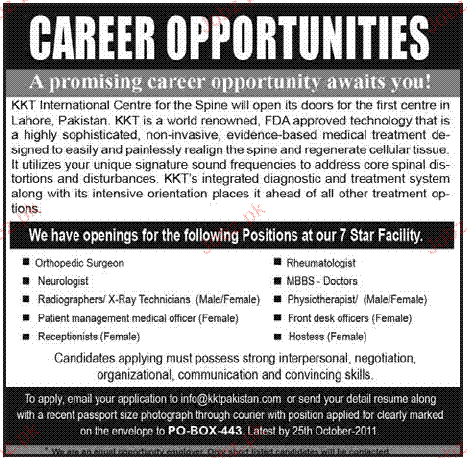 Doctors, Receptionist, Front Desk Offier Job Opportunity