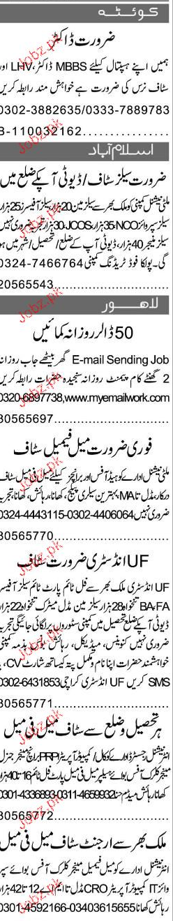 Apply as per details in job advertisement. Login to view further details of how to apply via https://www.jobz.pk online.