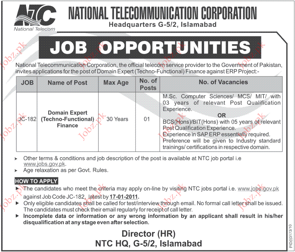 Apply as per details in job advertisement. Login to view further details of how to apply via https://www.jobz.pk online.
