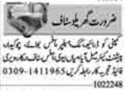 House Lahore Punjab Pakistan invites applications from eligible candidates for the post of Patient Care, Driver, Office Boy, Chowkidar, Helper, Cook and Aya as per advertisement of February 10, 2022 published in daily Dunya Newspaper. Middle, Primary and Matric etc. educational qualification will be preferred.