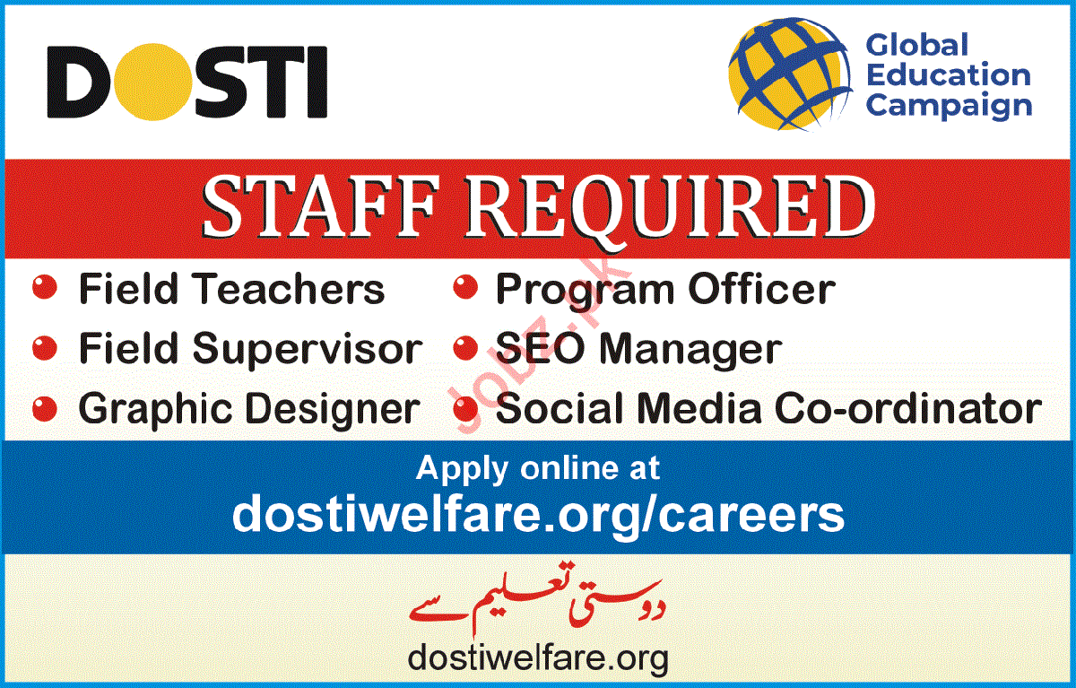 Vacancies in Dosti Welfare Organization Advertisement July 2019