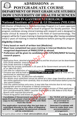 Dow University of Health Science Admission in FCPS in Karachi. Read newspaper ad for exact details.
