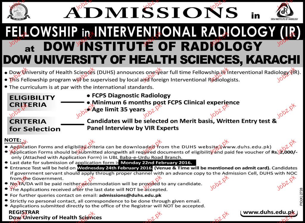 Dow University of Health Sciences Admission in Courses in Karachi. Read newspaper ad for exact details.