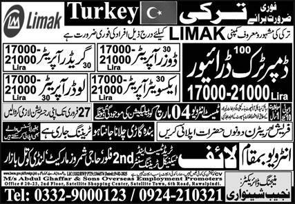 Life Trade Test & Technical Training Center jobs advertisement dated about 26 February 2025 in daily Express Newspaper invites application for the vacant post of dozer operator, grader operator, excavator operator, dumper truck driver, loader operator and driver in Istanbul, ankara Turkey. Preferred Education is Intermediate and Matric etc.